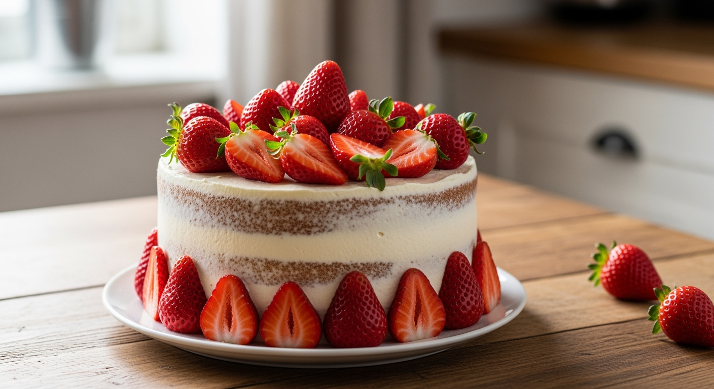 Dla miłośników prostoty, styl naked cake jest doskonałym wyborem. Eksponuje on naturalne składniki. W tej metodzie tort nie jest całkowicie pokryty kremem, co pozwala na widoczność warstw biszkoptu. Umieszczenie truskawek na szczycie tortu dodaje mu świeżości i koloru, zachowując jednocześnie jego prostotę i elegancję.